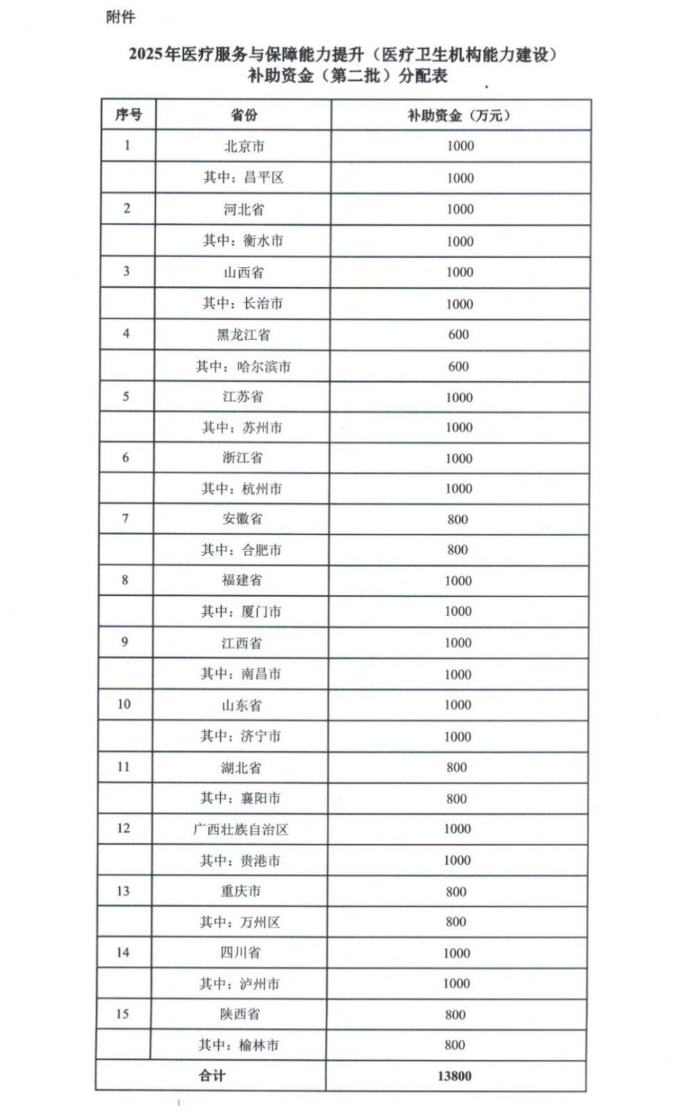 各地補助資金合計1.38億元。名單如下: