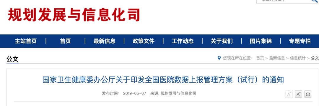 5月7日,國家衛生健康委員會官網掛出通知,向全國醫院印發《全國醫院數據上報管理方案(試行)》(下稱《試行方案》),加強和規范全國醫院數據報送管理。