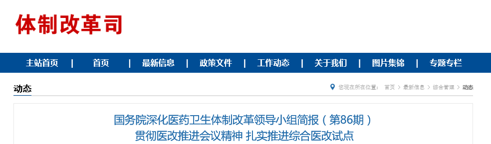 近日,國家衛健委醫改司發布主題文章《貫徹醫改推進會議精神 扎實推進綜合醫改試點》。